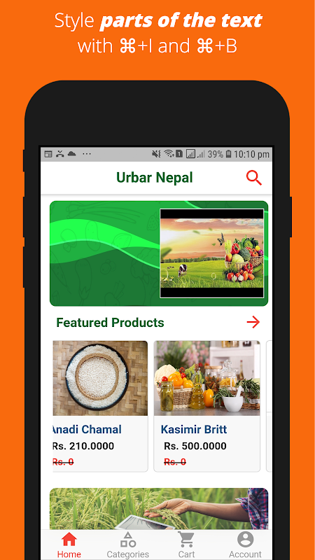 De Urbar Bazaar-app begon een intentie te openen voor marketing en distributie van geauthenticeerde producten en productie, ''Grown in Nepal''