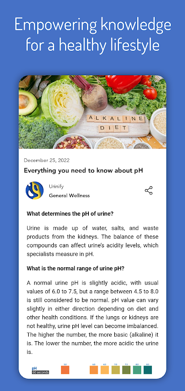 Wij begrijpen dat uw drukke agenda weinig tijd overlaat voor het beheer van uw welzijn. Daarom zorgt de geavanceerde technologie van Urinify ervoor dat u goed geïnformeerd blijft. U zult nooit meer cruciale vroege tekenen en symptomen missen, omdat de app u waarschuwt wanneer het nodig is om uw arts te raadplegen. Blijf waakzaam, blijf gezond en neem de controle over uw welzijnsreis.