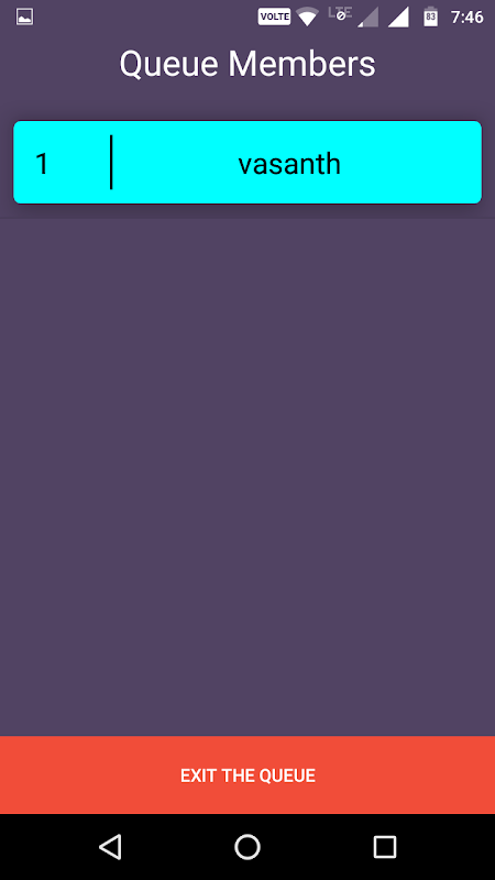 The functionality of this ‘User Virtual Queue’ is very elementary. Once the user reaches the place, he must open the application and make sure that his or her mobile is connected to the internet. Then, he is asked to enter the ‘Queue Code’. ‘Queue Code’ is the code that is unique to a specific queue at a place. Now the user must have the knowledge of the queue in which he would like to be a member of. When he has decided to be a member of a specific queue, he should enter the ‘Queue Code’ of that particular queue and click on ‘Enter the Queue’. This ‘Queue Code’ is provided by the manager of that place. Once the user clicks on ‘Enter the Queue’, it gets validated and he is navigated to a new page. In the new page, he should click on ‘Join the Queue’ button and enter his name. Upon joining, the user could see a list of names of people who are in that particular queue at the given time along with his own name in the list. This list gets updated frequently as new people join or when some names are removed by Manager. A user’s name at the top of the list means it is their turn. One can also exit the queue if one sees fit. In this way, the user can keep track of the queue list and see where he stands in the list.