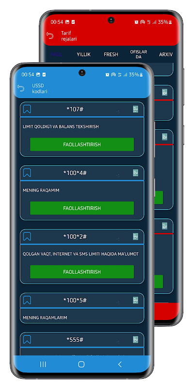 USSD Kodlar dasturni o'rnatganingizdan so'ng aloqa operatorlari