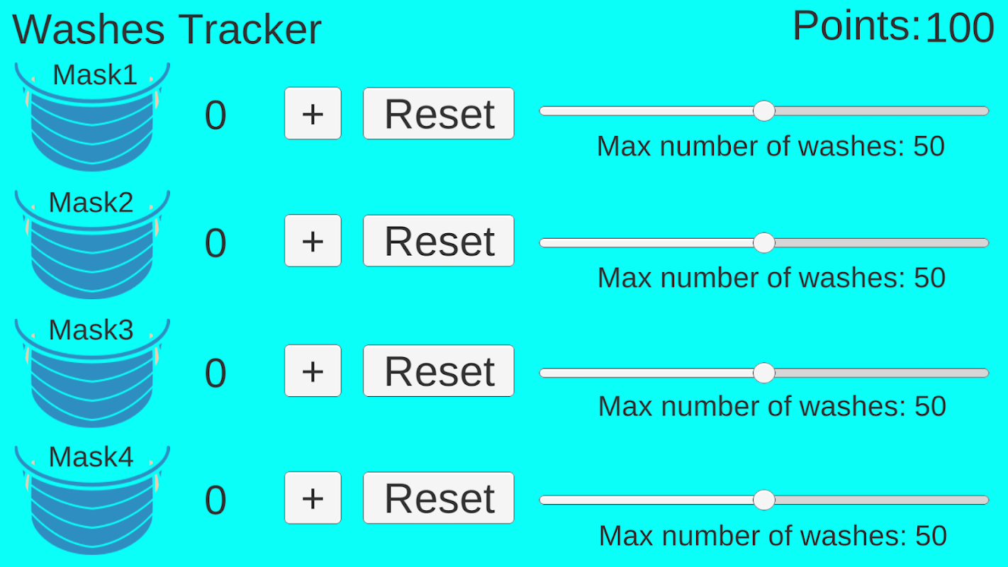 The user will start with 100 points which he/she can allocate to the reusable masks by clicking the plus button.