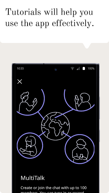 Nodig tot 100 gebruikers uit, en laat MultiTalk meertalige tekst-en spraakberichten vertalen.