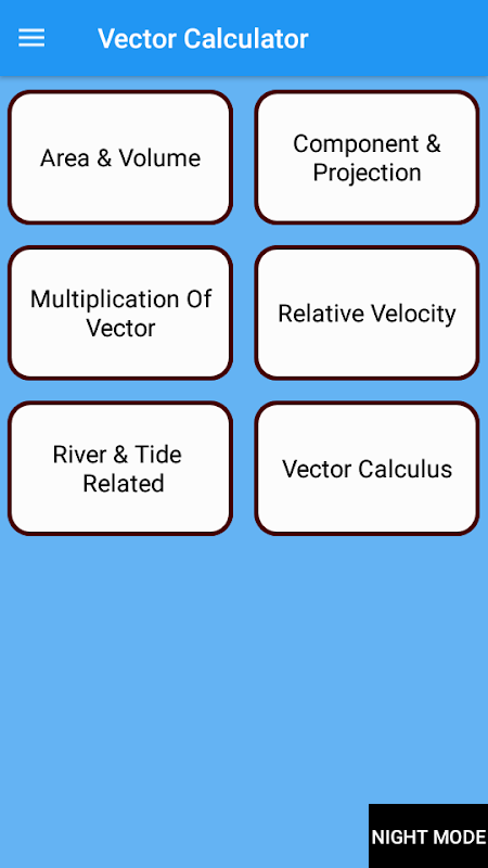 You also can change the Day Night Mode of Vector Calculator app in one tap.