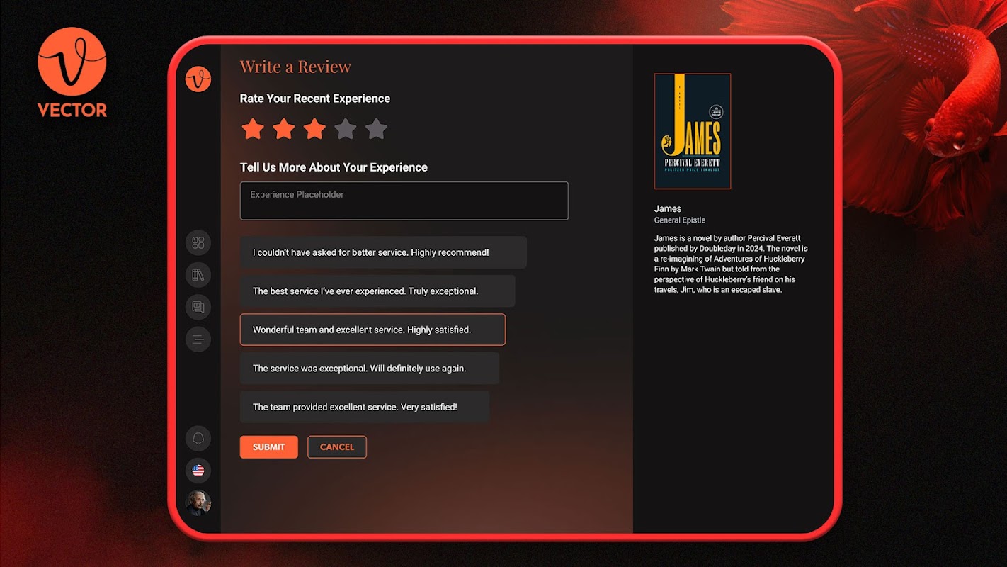 Vector is dé app voor alles wat met boeken te maken heeft. Zoek naar recensies, ontdek wat anderen zeggen en deel je eigen mening over de boeken die je geweldig vindt – of juist niet. Of je nu een gewone lezer bent of een literair criticus, Vector helpt je verbinding te maken door de kracht van eerlijke, inzichtelijke recensies.