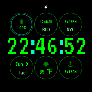 This is a free, open source project. Please submit any issues at https://github.com/CsabaConsulting/VFDWatchFace/issues. This is a Wear OS Watch Face with intentionally pixelated time display part for retro VFD feeling. The ambient mode displays AM/PM indication instead of seconds. The default color scheme is amber-yellow-red-vermilion because some AMOLED's blue color tend to age quicker, thus we may extend the life of the display by going red hue colors (otherwise I'd have gone cyan style to mimick some VFDs better). With v2.0 green and blue color schemes can be selected as well. The design offers 6 complication slots in two rows: one row is above the center time display and another row is below. All the complication slots are for small data.