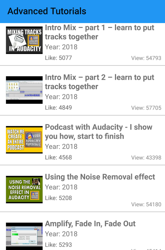 Audacity is an open source free software used by millions of sound professionals all over the word to create industry standard audio files. This app is a collection of video tutorials that includes Beginner Tutorials, Intermediate Tutorials, Advanced Tutorials of audacity which is especially useful for learners. It also includes complete 38 Tutorial Series and many useful tips for Audacity.
