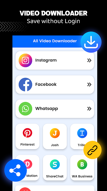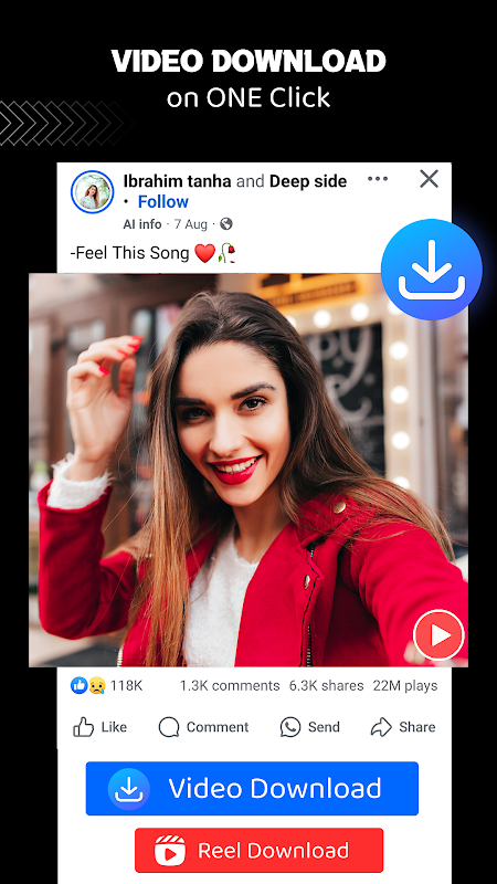 App helps you download videos with just one click, Simple & fast video downloader app to download videos from social media.