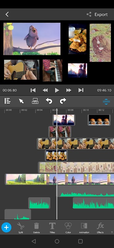 Pas overgangen, kleurfilters en dynamische effecten toe.