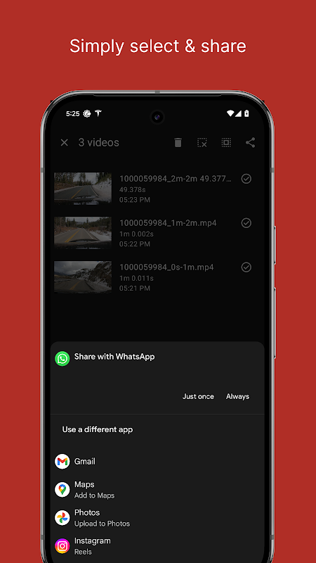 - Eenvoudig enkele of meerdere video's uit de bibliotheek selecteren en delen.