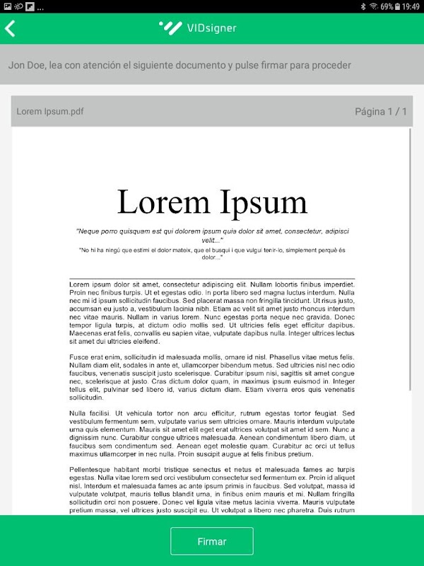 VIDsigner is een biometrische handtekeningservice voor PDF-documenten, zowel online als vanuit andere APP's, die de beveiliging van de traditionele elektronische handtekening combineert met de nieuwe mogelijkheden van de nieuwste generatie aanraakapparaten, waardoor maximale juridische veiligheid wordt gegarandeerd met de bruikbaarheid van de handgeschreven handtekening .