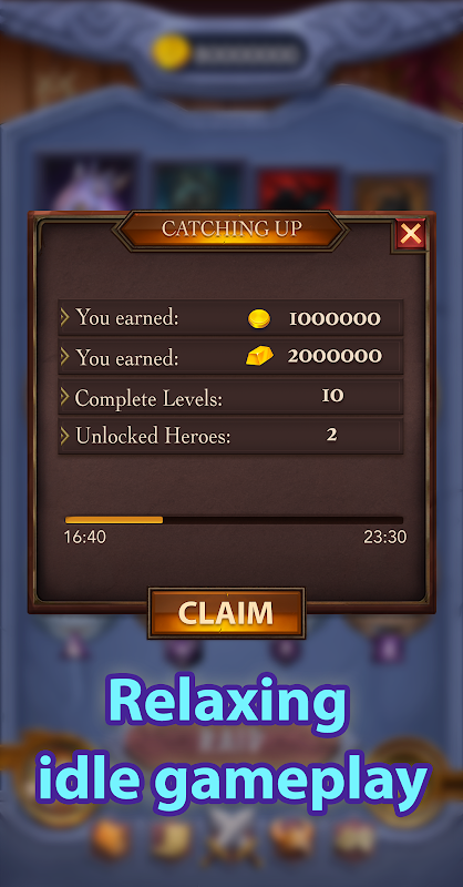 Je feest genereert goud, zelfs als je offline bent! Kom gewoon af en toe terug om je dorp te verbeteren en je helden op nieuwe avonturen te sturen.