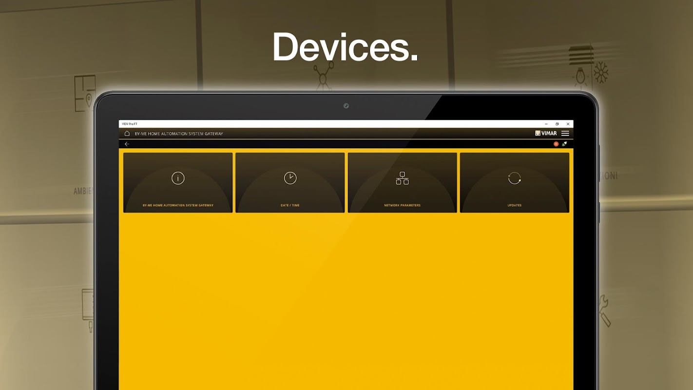 Met de VIEW Pro-app kan de professionele elektrische installateur het geïntegreerde VIEW IoT smart systems-systeem via een tablet configureren en het hele By-me Plus-subsysteem programmeren, zowel lokaal als op afstand, in een reeks eenvoudige stappen, geleid door een uiterst gebruiksvriendelijke interface . Na installatie op de smartphone kunt u met de APP de systemen bekijken en bepaalde basisbewerkingen op de gateways uitvoeren (scannen, inschrijven, firmware bijwerken en back-up maken).
