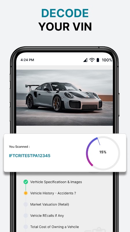 De VIN-nummercontrole en VIN-zoekopdracht is een geavanceerde mobiele applicatie die is ontworpen om een revolutie teweeg te brengen in de manier waarop gebruikers omgaan met voertuigen. VIN is de afkorting van Vehicle Identification Number. De VIN Check-app heeft al honderdduizenden voertuigbezitters en -liefhebbers geholpen om de juiste informatie voor hun gewenste voertuigen te krijgen. Nu is het jouw beurt om een eenvoudige VIN-scanner uit te voeren en gedetailleerde rapportage over gebruikte auto's te ontvangen voor het aankoopproces van je auto. Het is een geweldig hulpmiddel om auto's te vergelijken en de meest nauwkeurige waarde van het voertuig te krijgen in vergelijking met de gebruikte VIN-zoeker.
