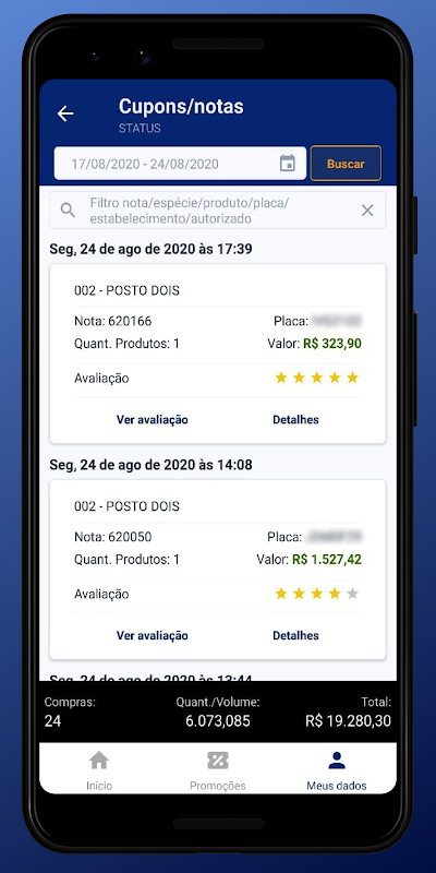 Fique atualizado das promoções vigentes nos postos credenciados e para cada compra avalie o atendimento recebido, ajudando o posto a aprimorar seus serviços.