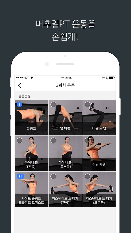 트레이너와 계약된 회원에게 회원의 체격, 자세, 체력을 고려하여 PT운동을 부여해주고 회원의 운동 수행 결과 확인이 가능합니다.