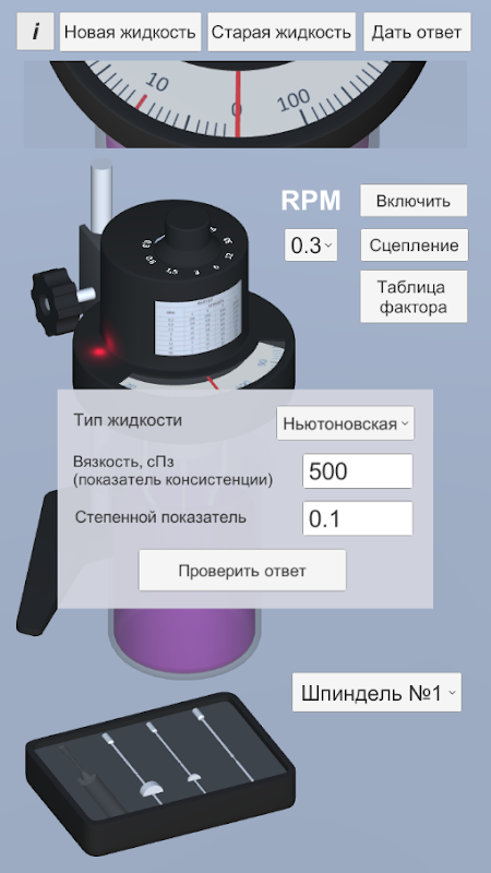 Simulator rotatieviscometer. Dankzij dit programma kunt u de principes van het meten van de dynamische viscositeit van een vloeistof beheersen.