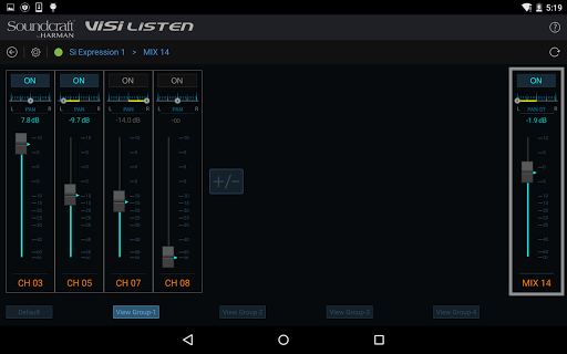 Soundcraft ViSi_Listen is een Android-applicatie waarmee de bijdrageniveaus van de mixbus voor Si Impact-, Si Performer-, Si Expression- en Si Compact-mengpanelen draadloos op afstand kunnen worden bediend. Verbind uw Android-apparaat met een draadloze toegangsrouter die is aangesloten op de Harman HiQnet® Ethernet-poort van de console.