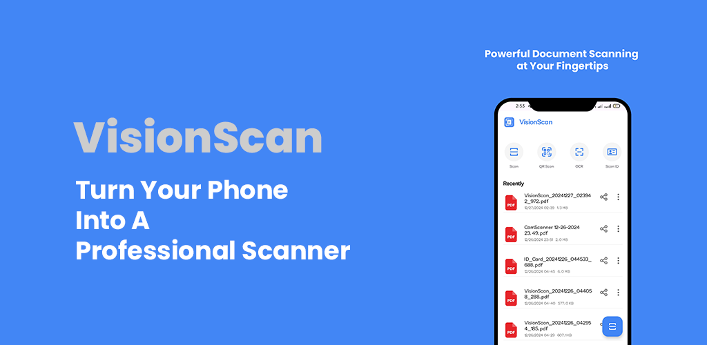 Vision Scanner: documenten scannen naar PDF, QR-lezer en OCR-tekstscanner