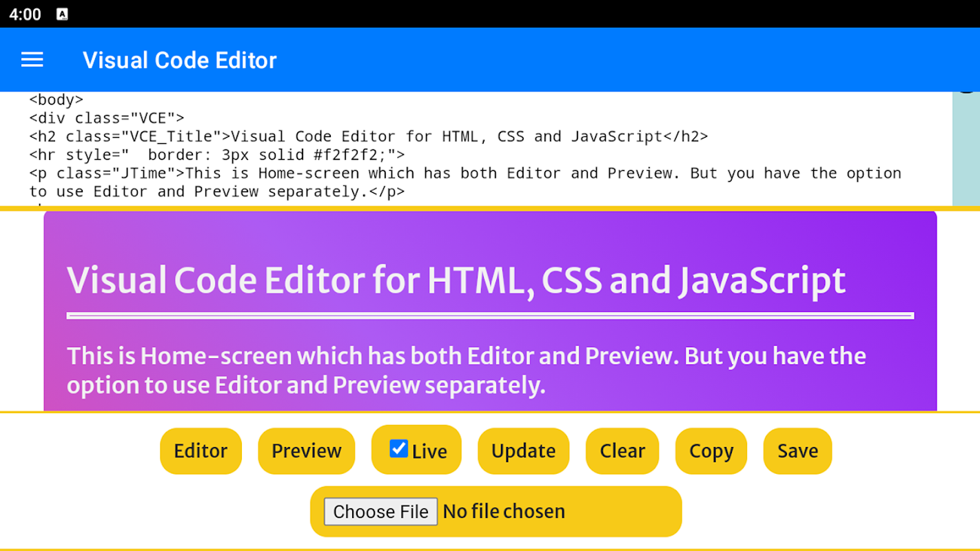 Het is handig. Installeer deze Visual Code Editor in uw Android-telefoon of -tabblad en test HTML, CSS, JavaScript wanneer u onderweg bent .