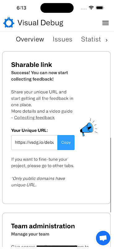 - Gecentraliseerd feedbackbeheer: bekijk en beheer eenvoudig alle feedback op één plek. Met de mobiele Visual Debug-app kunt u feedback volgen, prioriteren en toewijzen aan teamleden zonder dat u aan uw computer gebonden bent.