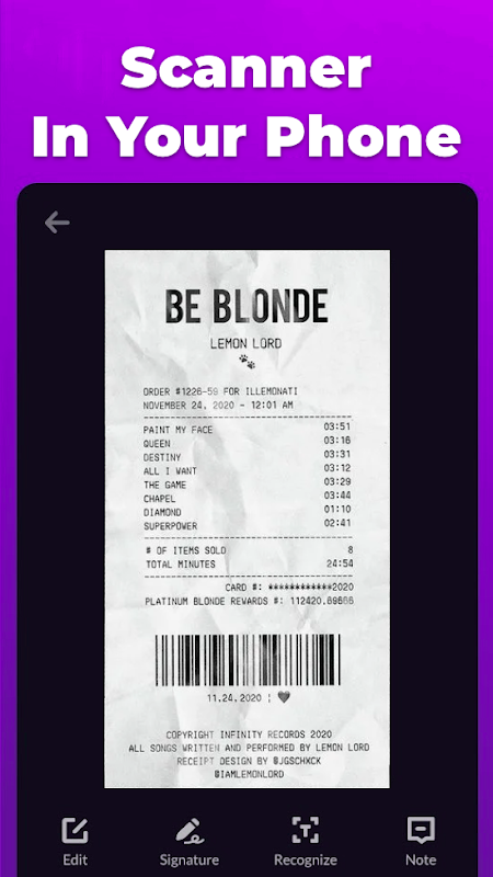 The camera scanner allows you to recognize scanned files and photos containing text.
