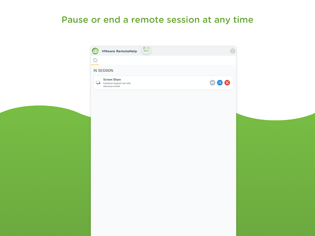 VMware RemoteHelp™ is een app voor externe ondersteuning waarmee u in real-time veilig uw scherm kunt delen met customer support-medewerkers. Als u een externe sessie wilt starten, downloadt u de app en voert u de 4-cijferige pincode in die u ontvangt van de support-medewerker. U kunt externe sessies op elk gewenst moment onderbreken of beëindigen.