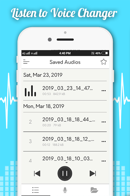 - List all the audios from the SD card, choose an audio and apply funny effects.