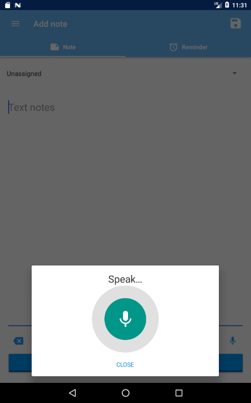 U kunt een nieuwe notitie snel te maken met behulp van spraakherkenning en, indien nodig, bewerkt u de uitgeschreven tekst met behulp van extra acties of een virtueel toetsenbord.
