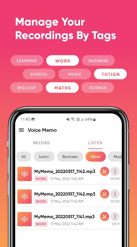 - Maak en beheer categorieën om te categoriseren naar uw audio-opnamen en spraakmemo's