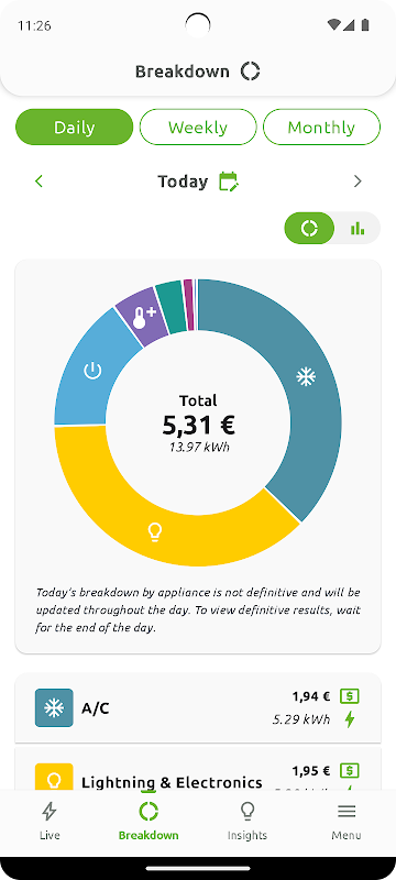 • Begrijp uw totale energieverbruik en kosten per dag of maand.