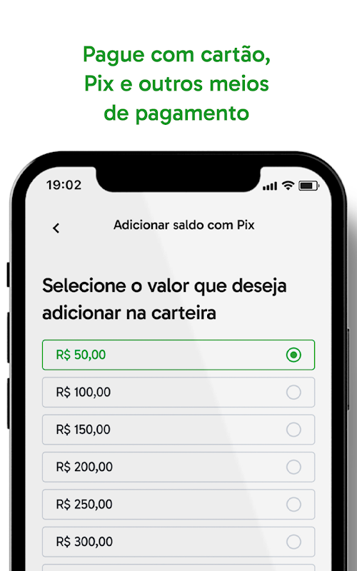 Voeg saldo toe aan uw digitale portemonnee met Pix of creditcard;