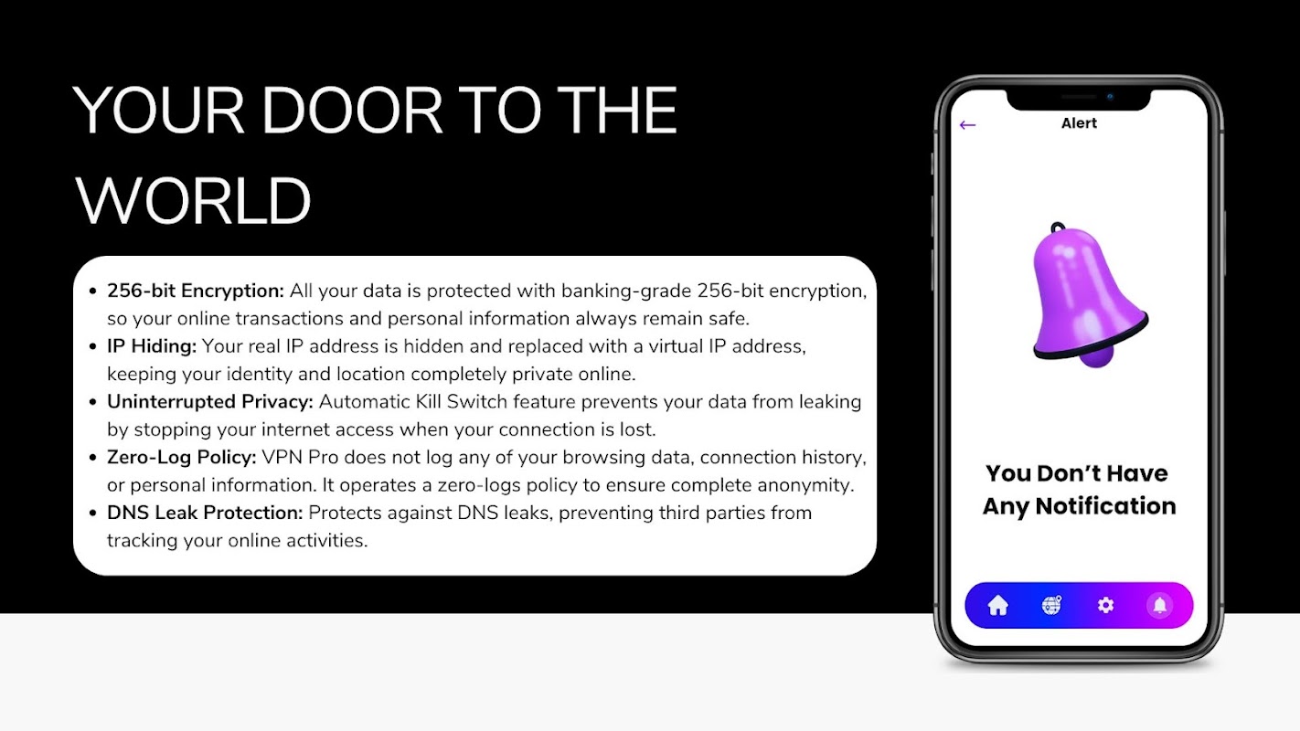 VPN Pro biedt een anonieme internetervaring door gebruikers te verbinden met vertrouwde servers en hun echte IP-adressen te verbergen. Dit zorgt ervoor dat internetactiviteiten van gebruikers niet gevolgd kunnen worden en ontoegankelijk blijven voor derden.