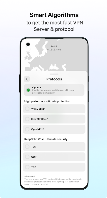 ✔️ Veilige protocollen - OpenVPN, IKEv2, KeepSolid Wise, WireGuard - Elk van onze protocollen heeft zijn eigen sterke punten en u kunt degene kiezen die het beste aan uw behoeften voldoet.