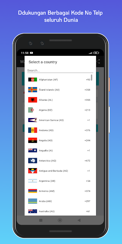 Deze applicatie maakt geen deel uit van WhatsApp Inc. en is er niet officieel mee verbonden. WA Cepat maakt gebruik van de officiële klik-om-te-chatten-functie van WhatsApp om gebruikers toegang te geven tot de berichtenapp die al op hun apparaten is geïnstalleerd.
