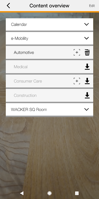 Betreed een hele nieuwe wereld van opmerkelijke chemie en geniet van opwindende en onverwachte inzichten: AR combineert realiteit, visie en informatie op opvallende manieren. De koppeling van de echte wereld met zijn digitale tegenhanger geeft u toegang tot aanvullende beschrijvende en opwindende inhoud. Specifieke links naar de website van WACKER of naar speciale mediacollecties rechtstreeks in WACKER Square geven u snel en gemakkelijk toegang tot alle relevante inhoud en diepgaande informatie.