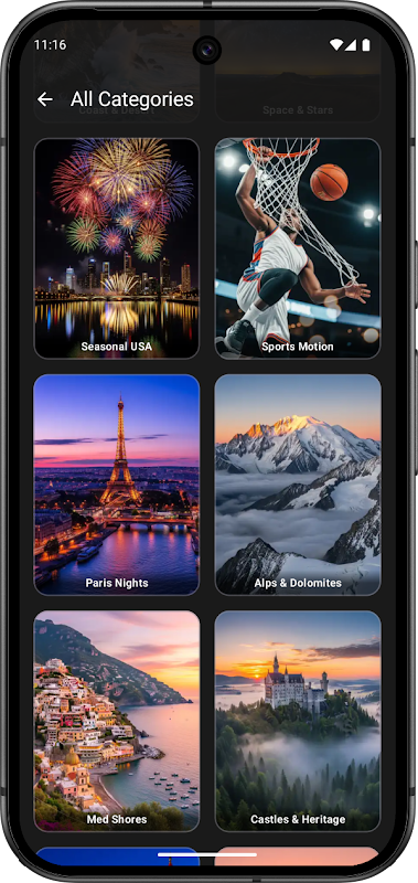 Scherpe, levendige telefoonachtergronden, geoptimaliseerd voor FHD+, QHD+ en AMOLED-schermen.