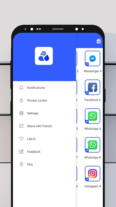 Water Clone -Paralle Space & App Clone kan u helpen bij het klonen van applicaties, inloggen op meerdere accounts tegelijk op één telefoon en het uitvoeren van twee identieke applicaties tegelijkertijd. Net als de naam van onze app, kunnen we een parallelle ruimte op de telefoon creëren en de applicatie in je telefoon klonen om de parallelle ruimte te ontvangen. Hiermee kunt u zich tegelijkertijd bij meerdere accounts aanmelden.