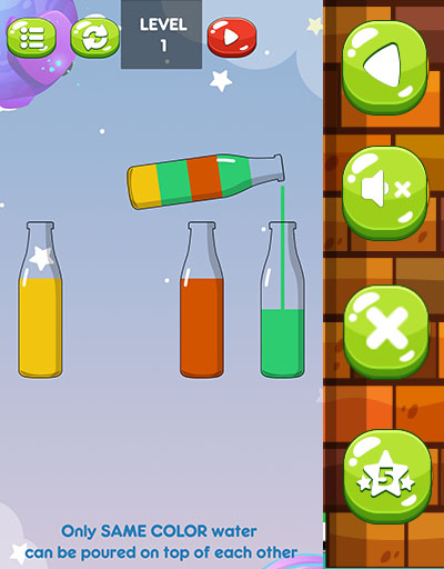 • You will win when you successfully arrange the water in each bottle with the same color.