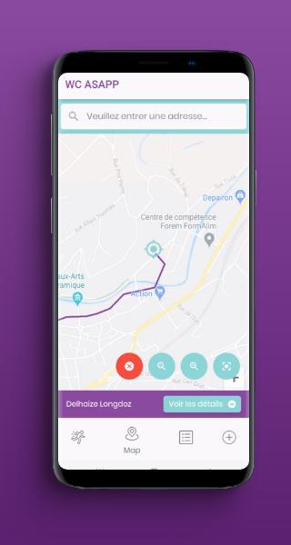 WC ASAPP is een app met geo-lokalisatie die mensen helpt om een toilet te vinden dicht in hun buurt. Algemene informatie over deze toiletten (afstand, score, openingstijden, hygiënisch niveau, kosten, enz...) wordt ook gegeven. De app brengt u automatisch naar het toilet van uw keuze. Gebruikers worden uitgenodigd om de toiletten te beoordelen, nieuwe toiletten toevoegen kan ook. Via crowdsourcing zal de app meer en meer toiletten bevatten met nuttige informatie. Download hem nu en sluit u aan bij de gemeenschap!