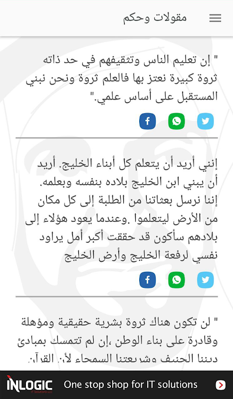 We are Zayed application was developed to be the first Electronic platform in UAE in the year of Zayed, where the application is characterized by many characteristics and advantages including but not limited to Sheikh Zayed biography and integrated media library, including employment of modern technologies in sharing the electronic posts to spread Sheikh Zayed quotes across all social media networks.
