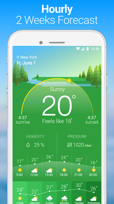 Deze weersvoorspellingsapp bestaat uit een leesbaar pictogrammenpakket en speciale kaarten om weergegevens van de lokale omstandigheden weer te geven. Het weerscherm van het beginscherm verandert ook, afhankelijk van de prognose. Het ontwerp van de app Weer één is helemaal geweldig en het zal je op het eerste gezicht fascineren!