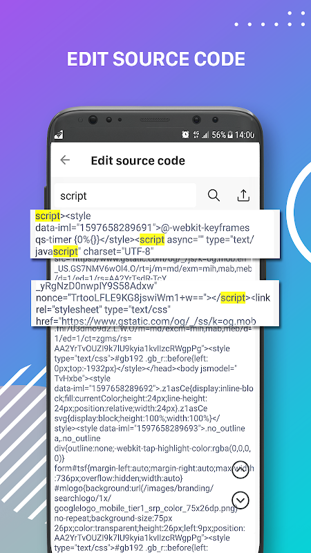 + Met deze applicatie kunt u de HTML-broncode van een live website alleen op uw apparaat wijzigen. Elke wijziging die u aanbrengt, wordt NIET in het systeem opgeslagen.