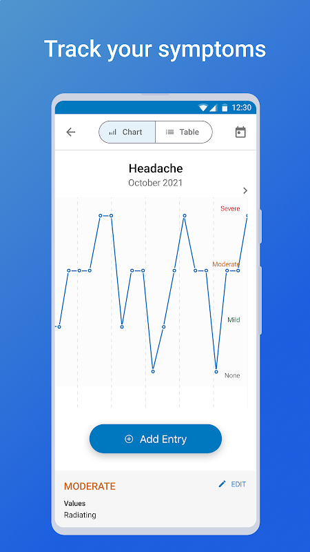 • Symptoomtracker – Volg lopende symptomen en aandoeningen in de loop van de tijd.