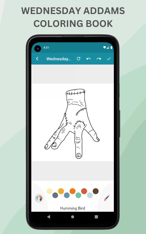Wednesday Addams Color-applicatie is een applicatie die je helpt je creativiteit en verbeeldingskracht te vergroten bij het schilderen en kleuren van afbeeldingen, speciaal voor Wednesday Addams-afbeeldingen. Deze Wednesday Addams Color-app is zo'n leuke app die tientallen Wednesday Addams Family-foto's bevat die helemaal gratis zijn.