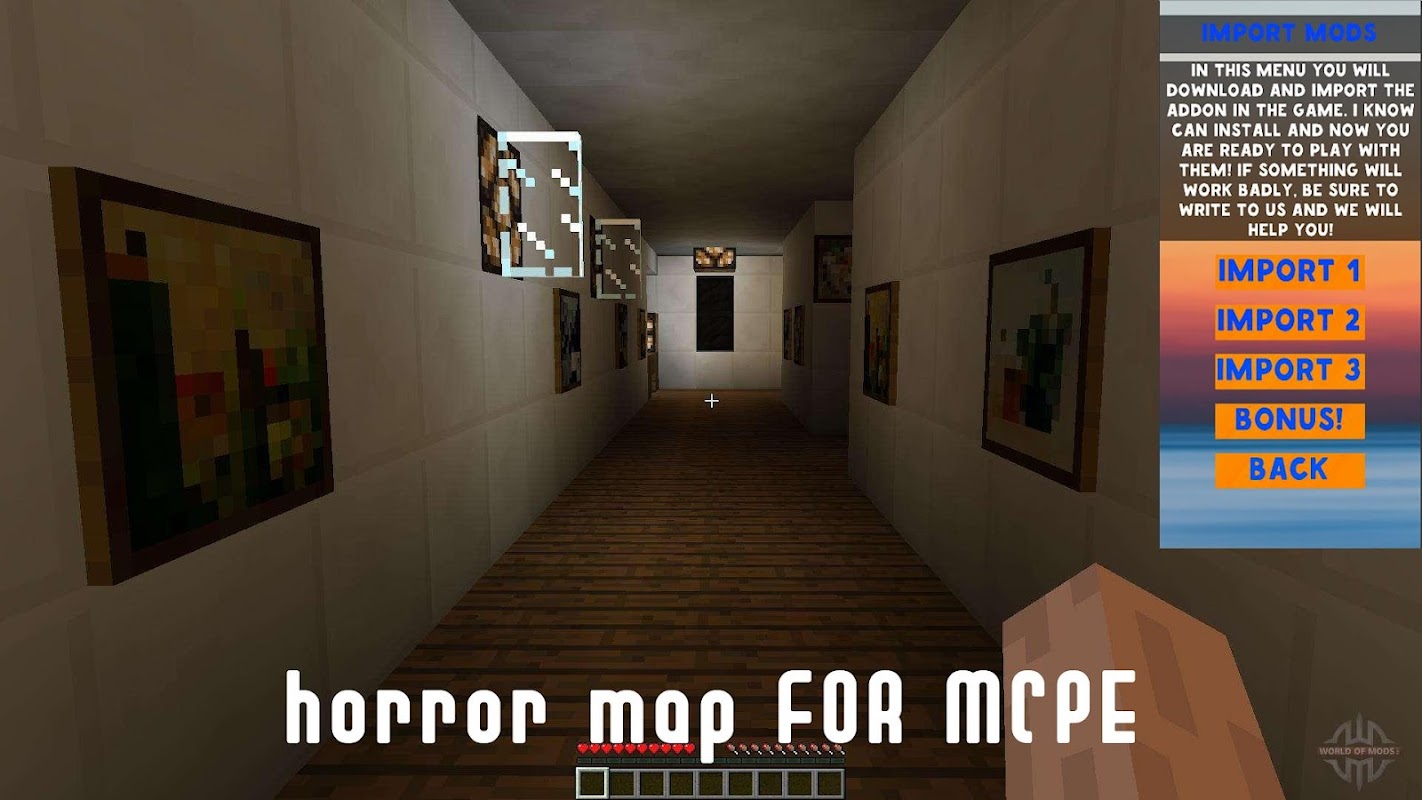 😀Als je de reguliere versie van Minecraft beu bent en de gameplay wilt diversifiëren, kun je een van onze Horror Wednesday-aanpassingen installeren. Dit is waar we het hierboven over hadden. Maar dit zal niet de gebruikelijke toevoeging zijn die fantastische dieren, nieuwe locaties of rekwisieten toevoegt, maar unieke mods. Je kunt de altijd bijgewerkte Horror Map Mod voor Minecraft Pocket Edition 2022 downloaden!🤣😀