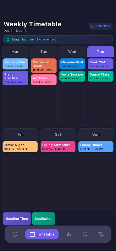 Weekly Timetable is een uitgebreide app voor weekplanning, ontworpen om je te helpen taken en schema's efficiënt te beheren.