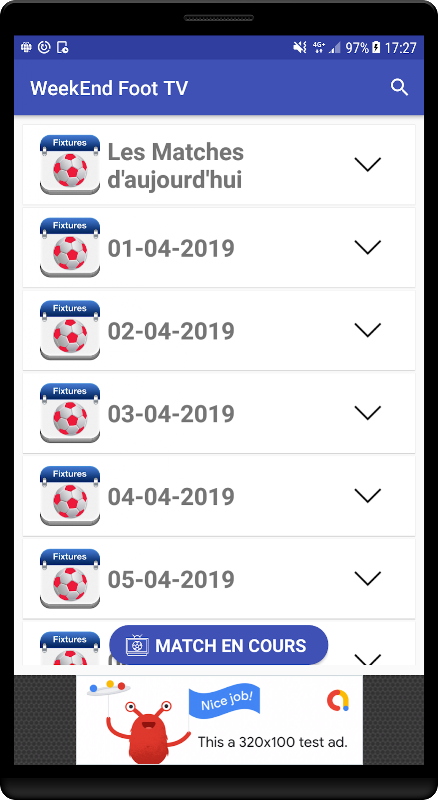 - Affichage de programme des matches de foot pour les prochaines jours.