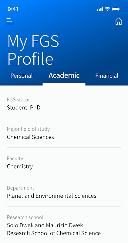 Een vergelijkbare set functies is beschikbaar voor hoofden van onderzoeksgroepen. Vanwege beperkingen op het gebied van informatiebeveiliging bieden sommigen van hen, in tegenstelling tot dezelfde functies in de Desktop-app, de mentoren slechts gedeeltelijke informatie over hun studenten. Toch is het ook voor hen krachtig en nuttig. FEED *: Ontvang algemene FGS-aankondigingen evenals administratieve en academische meldingen; * MIJN GROEP *: Zie een lijst van huidige studenten en postdocs met administratieve basisinformatie over hen (inclusief: Status, startdatum, FGS-ondersteuning van hun fellowship, co-adviseur, examinatoren en meer). Bekijk een lijst van oud-studenten en postdocs plus informatie over de start- en einddata van hun studie (oud-studenten) of opleiding (oud-postdocs), evenals ceremoniejaar (oud-studenten). * Lesgeven *: bekijk de lijst met cursussen die ze in het huidige academiejaar geven, samen met relevante informatie zoals aantal studiepunten, semester, dag, tijd, locatie, datum eerste sessie, aantal ingeschreven studenten, type evaluatie en relevant informatie; Toegang tot de webcursuspagina; zicht op de feedback van de deelnemers; Rapporteren over lesuren en gerelateerde taken; Bekijk de lijst met cursussen die ze de afgelopen drie jaar hebben gegeven; Bekijk het gemiddelde van de cursuscijfers, het aantal studenten dat cijfers heeft ontvangen en het aantal deelnemers dat feedback heeft gegeven op de cursus; Bekijk de feedback over elke cursus. * MIJN GROEP CPs *: Bekijk een overzicht van behaalde studiepunten en cursussen gevolgd door elk van hun huidige studenten; * MIJN GROEPSONDERZOEK *: bekijk data die verband houden met voortgangsrapporten en scriptie (d.w.z. deadline, verlenging, inzending, verdediging en goedkeuring) van hun huidige studenten; Vraag om extensies. * MY GORUP ABSENCE *: Bekijk het afwezigheidsoverzicht met betrekking tot vakantiedagen. * FGS-REGELINGEN *: Zoeken en bekijken; * FGS-CONTACTEN *: Gepersonaliseerde FGS-contacten; * ACADEMISCHE KALENDER *: Bekijk de academische kalender van het huidige jaar en volgend jaar; * WIS DIREVTORY *: Toegang tot contactgegevens van iedereen op de campus; * Dagmenu *: Dagmenu's, prijzen en specials aangeboden door de kantines op de campus; * WIS BIBLIOTHEEKDIENSTEN * (via link); * WIS GEÏNTEGREERDE KALENDER * (via link); * Campus KAART & NAVIGATIE * (via link); en * Instellingen *.