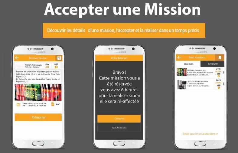 Utilisez la liste des mission ou la carte pour choisir une mission disponible près de chez vous . Une fois acceptée, vous disposez d'une durée pour la réaliser.