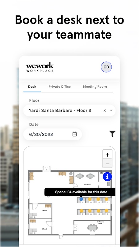 De WeWork Workplace-app is ontworpen voor werknemers met een WeWork Workplace-account en ontgrendelt de mogelijkheid om beschikbare ruimte te doorzoeken en te boeken in alle kantoren van uw bedrijf en 500+ extra WeWork-locaties over de hele wereld.